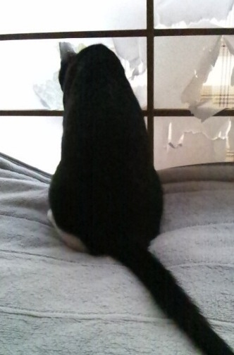 もともとダンナがちょこっと蹴破ってた(寝相がステキwだから)んですが、ソコから障子と窓の間を出入りしやがってこんな事に。先住猫で経験済みとは言え、ヒドいわw